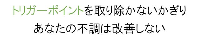 あなたの症状は、今のままでは原因となるトリガーポイントに適切にアプローチできていないため、症状が一向に改善しない可能性があります。