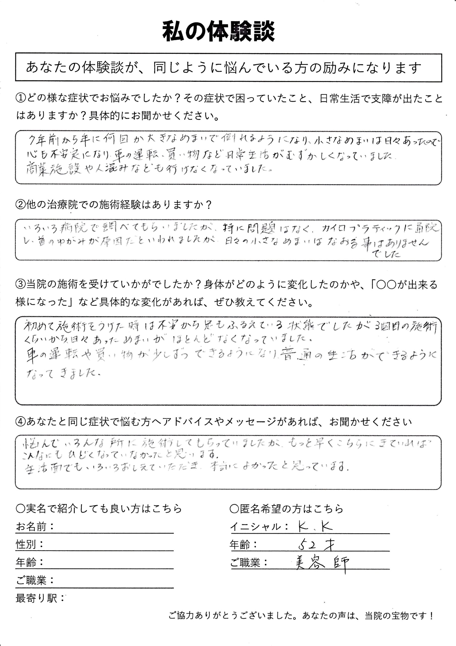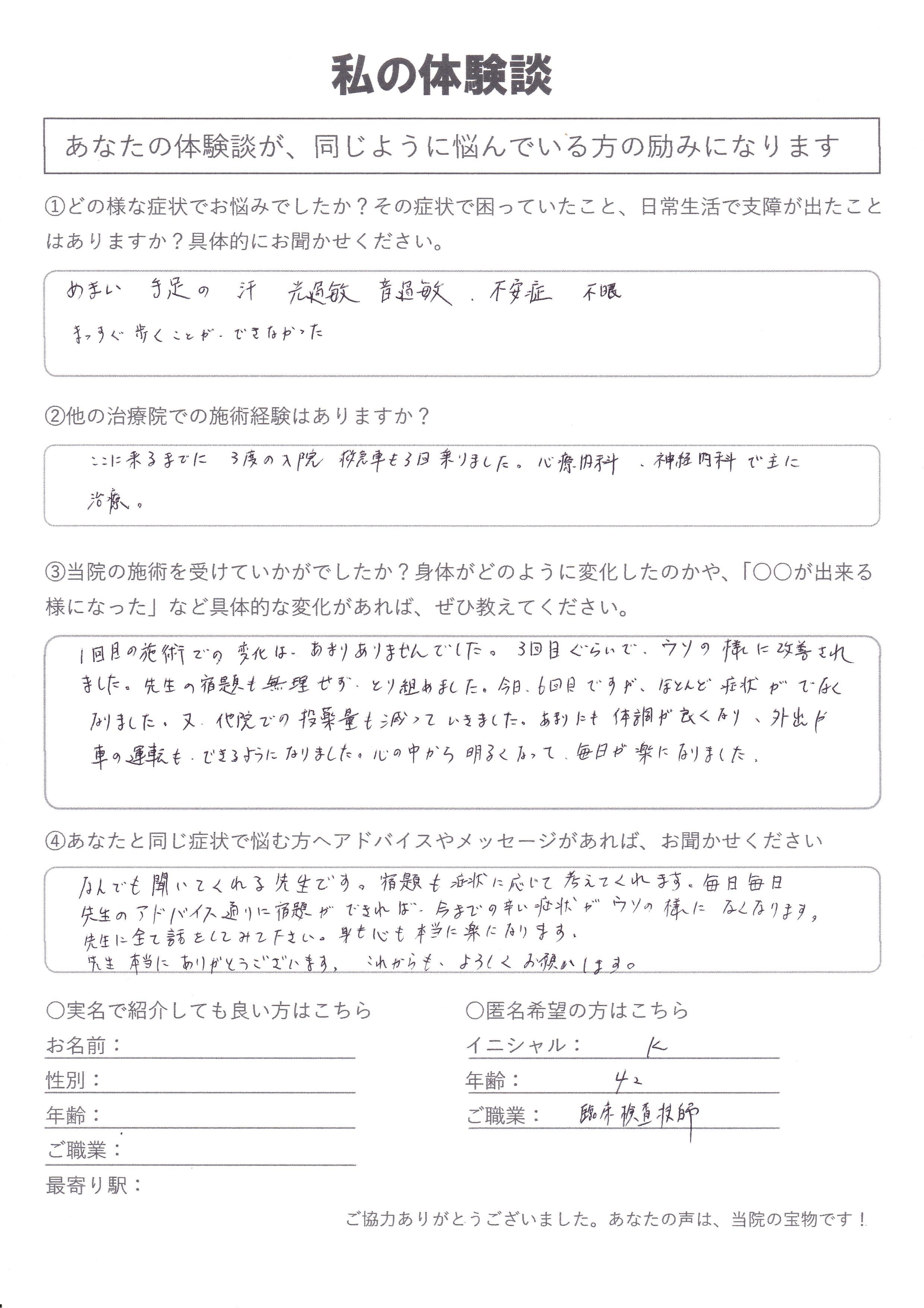 | 頭痛・めまい・不眠・自律神経失調症 K.S様 20代 |