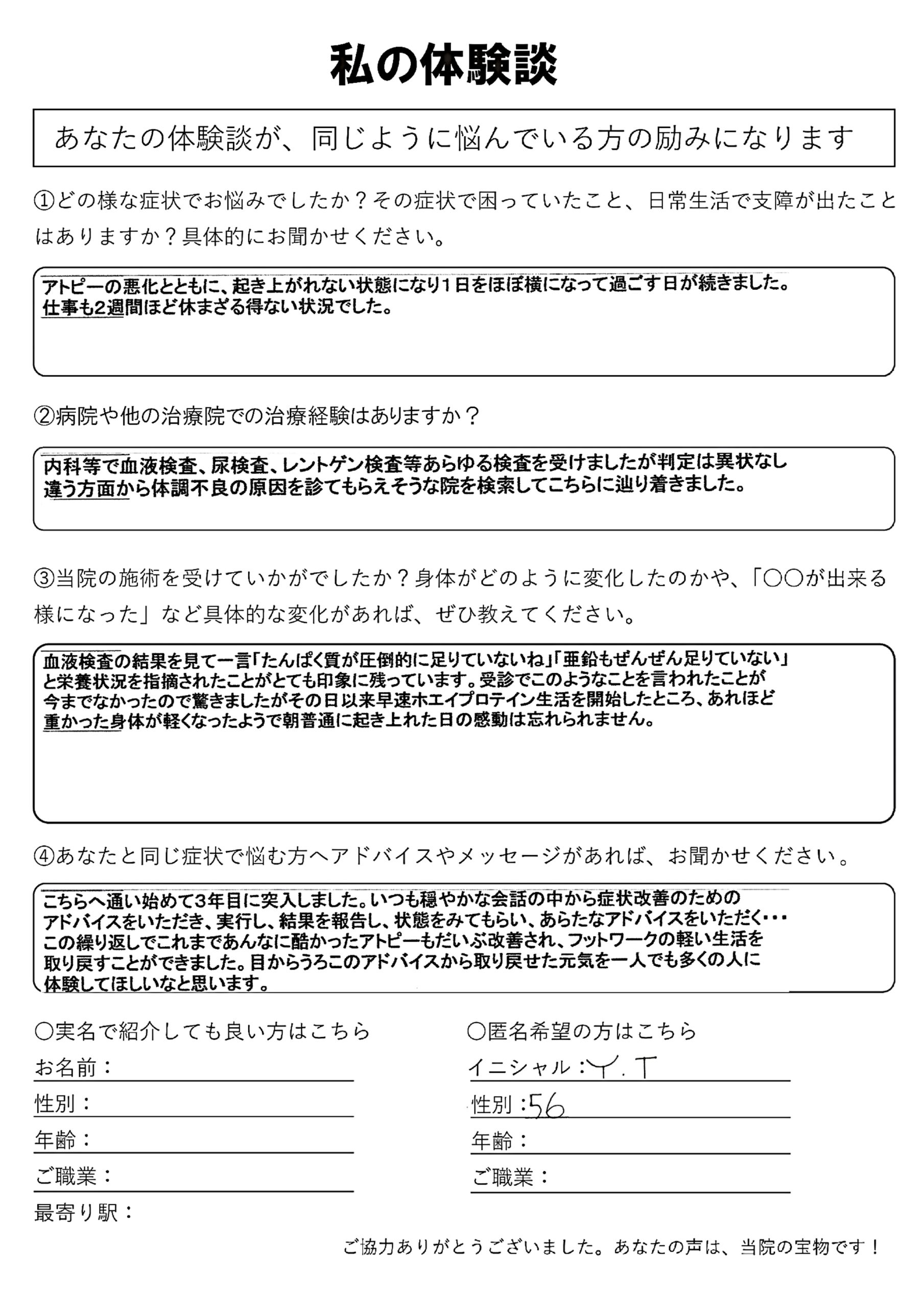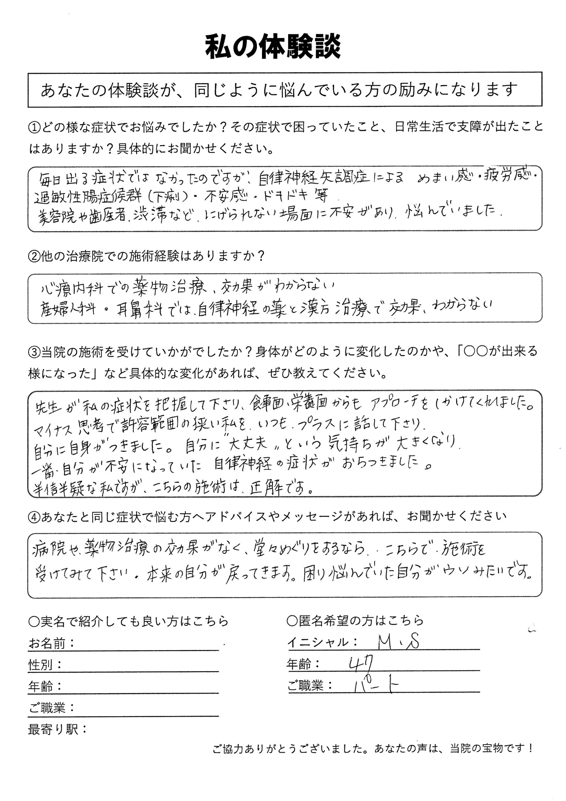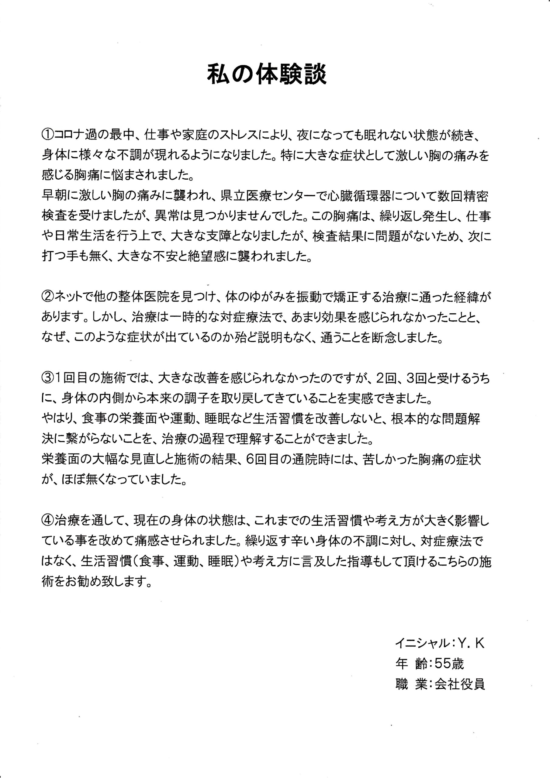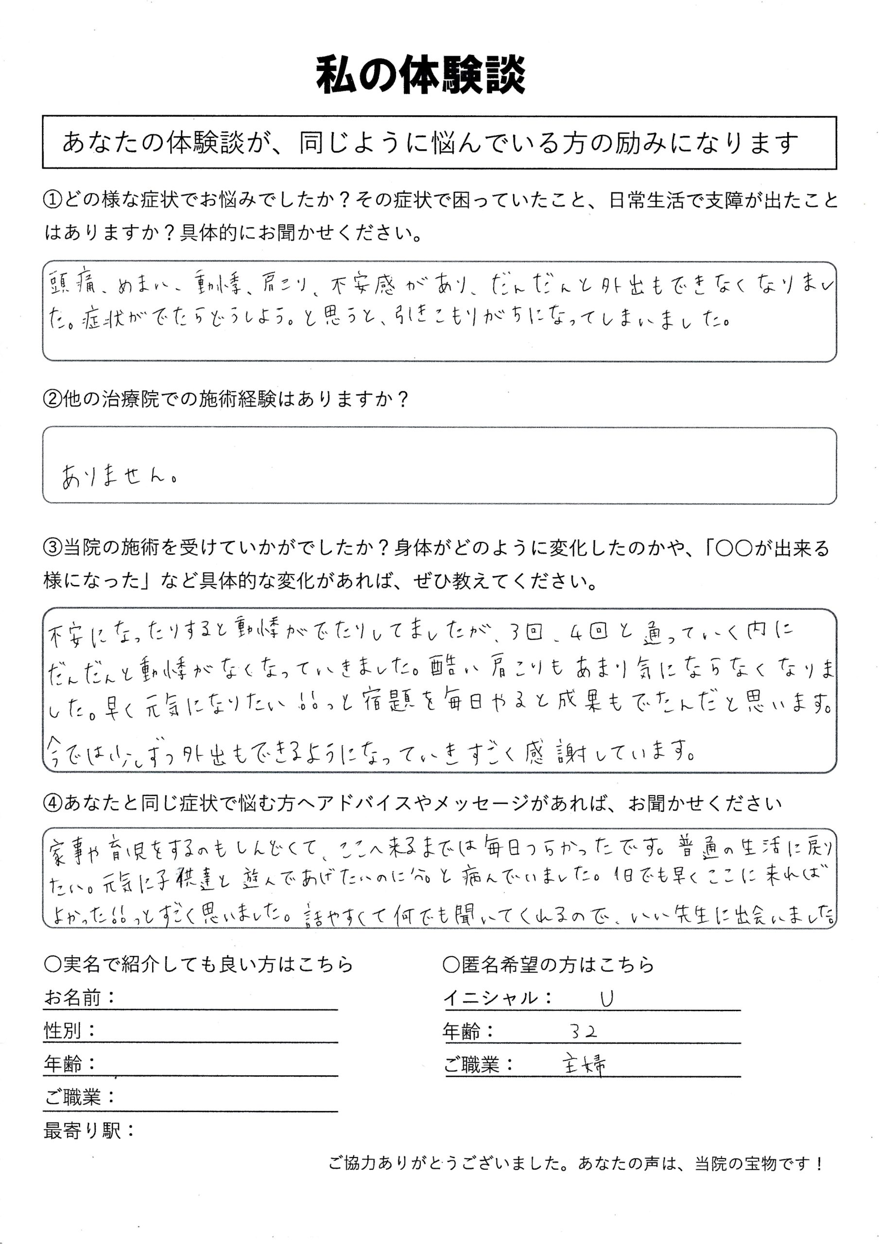 | 息苦しさ・動悸・不安感・自律神経失調症 Y.U様 37歳 看護師 |