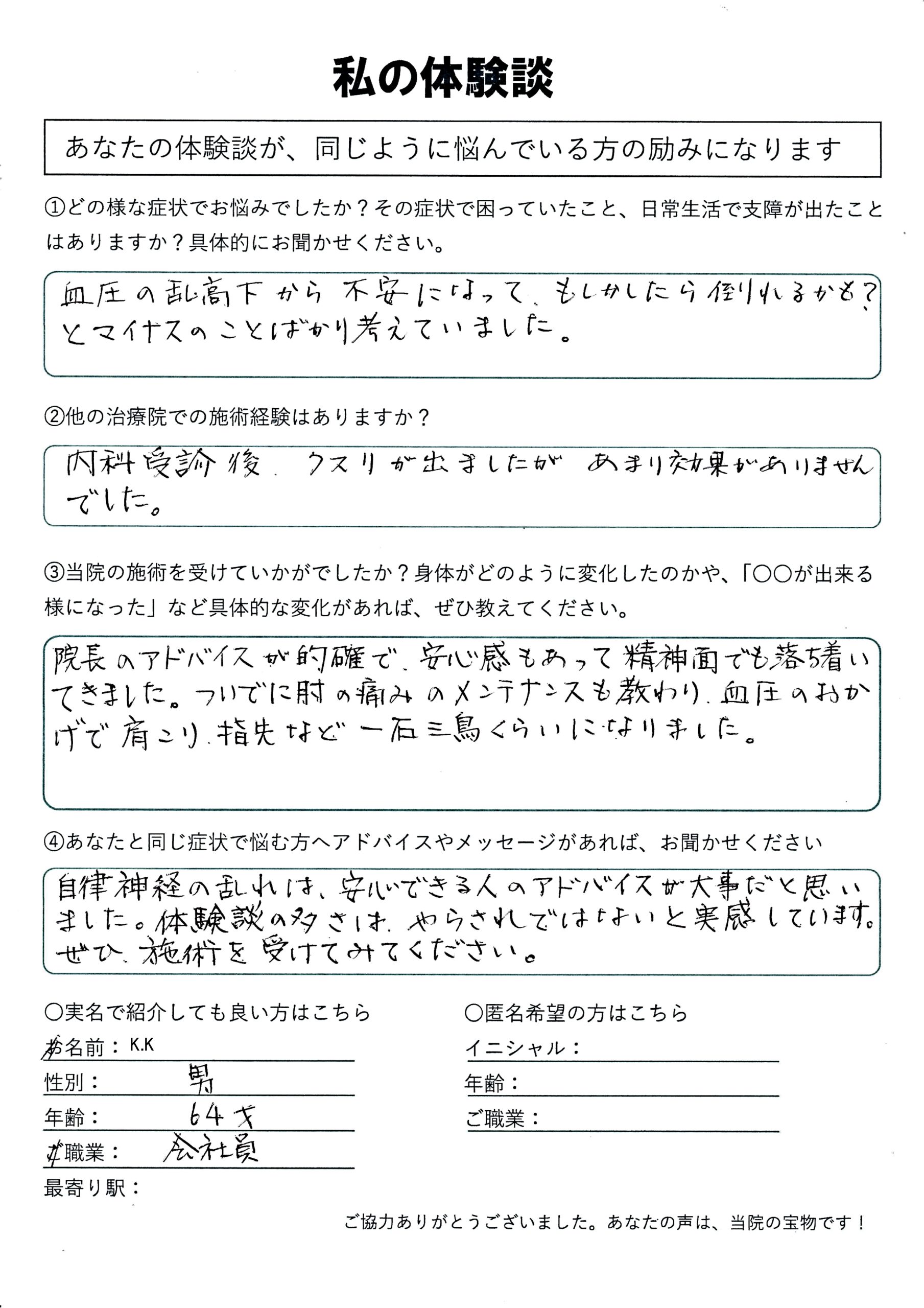 | 自律神経失調症・めまい・吐き気 M.H様 64歳 女性 |