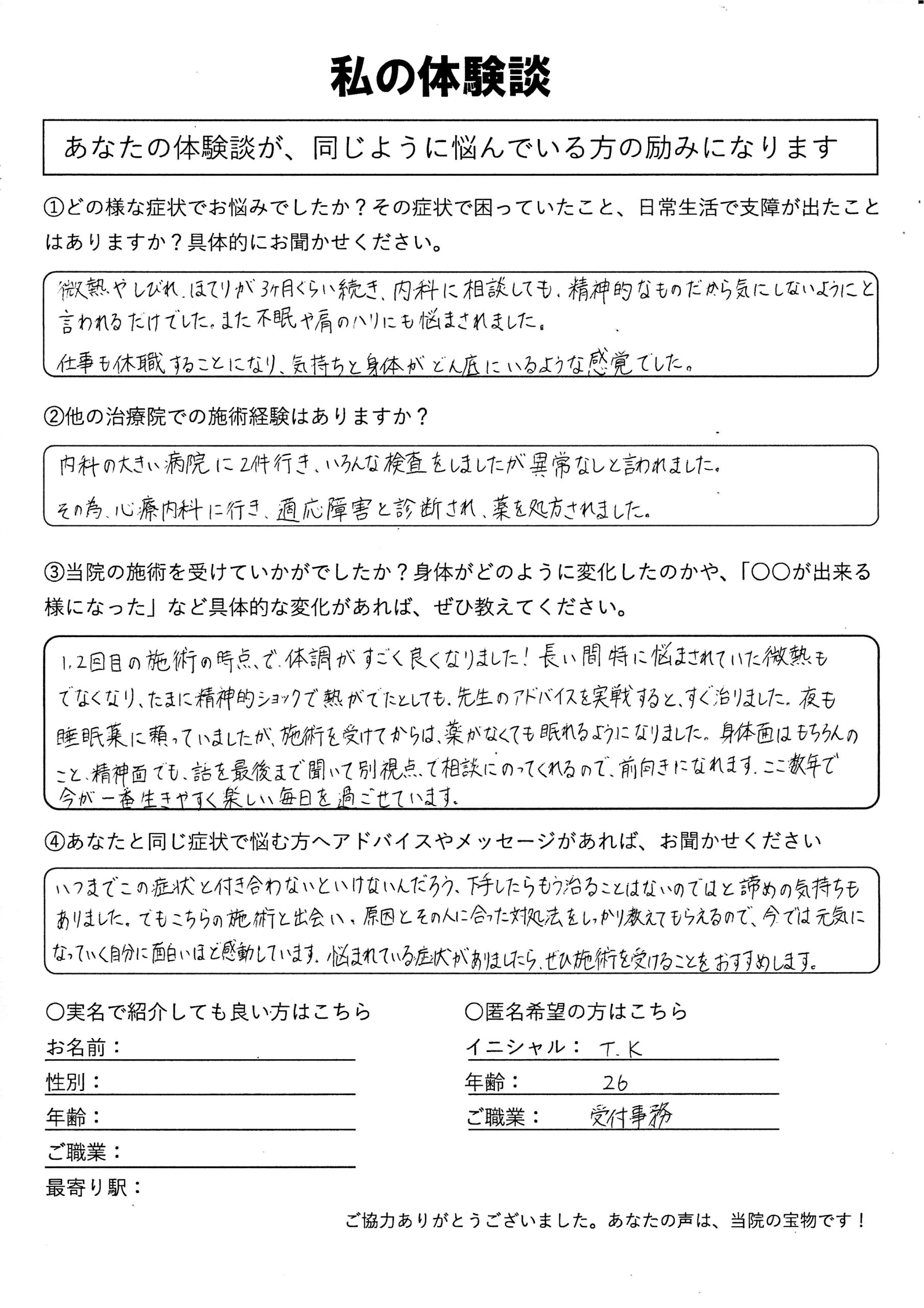 | 起立性調節障害・倦怠感・微熱 Y.K様 17歳 女性 |