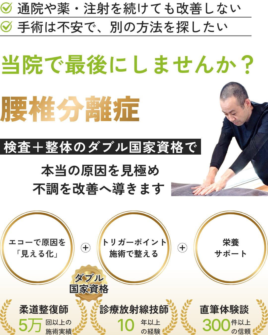 ■ 柔道整復師(国家資格)として累計5万回以上の施術実績
