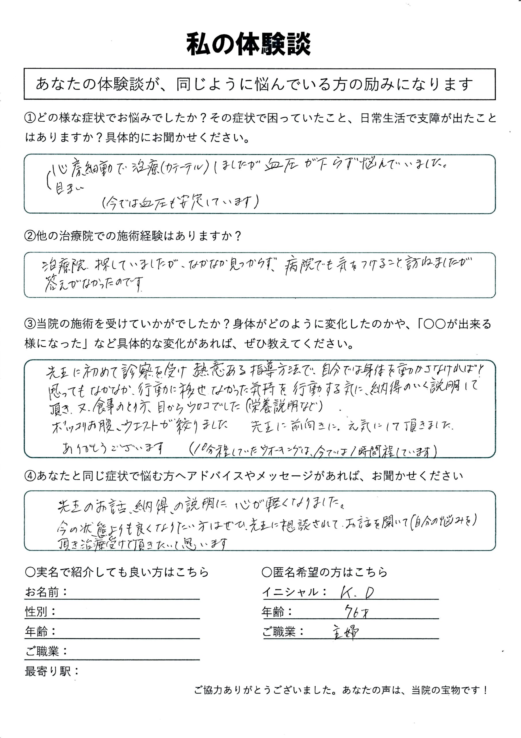 | 高血圧・めまい K.D様 70代 女性 |
