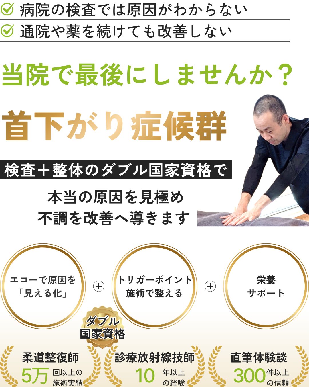 なぜ当院では首下がり症候群の改善を追求できるのか?3つの整体アプローチ