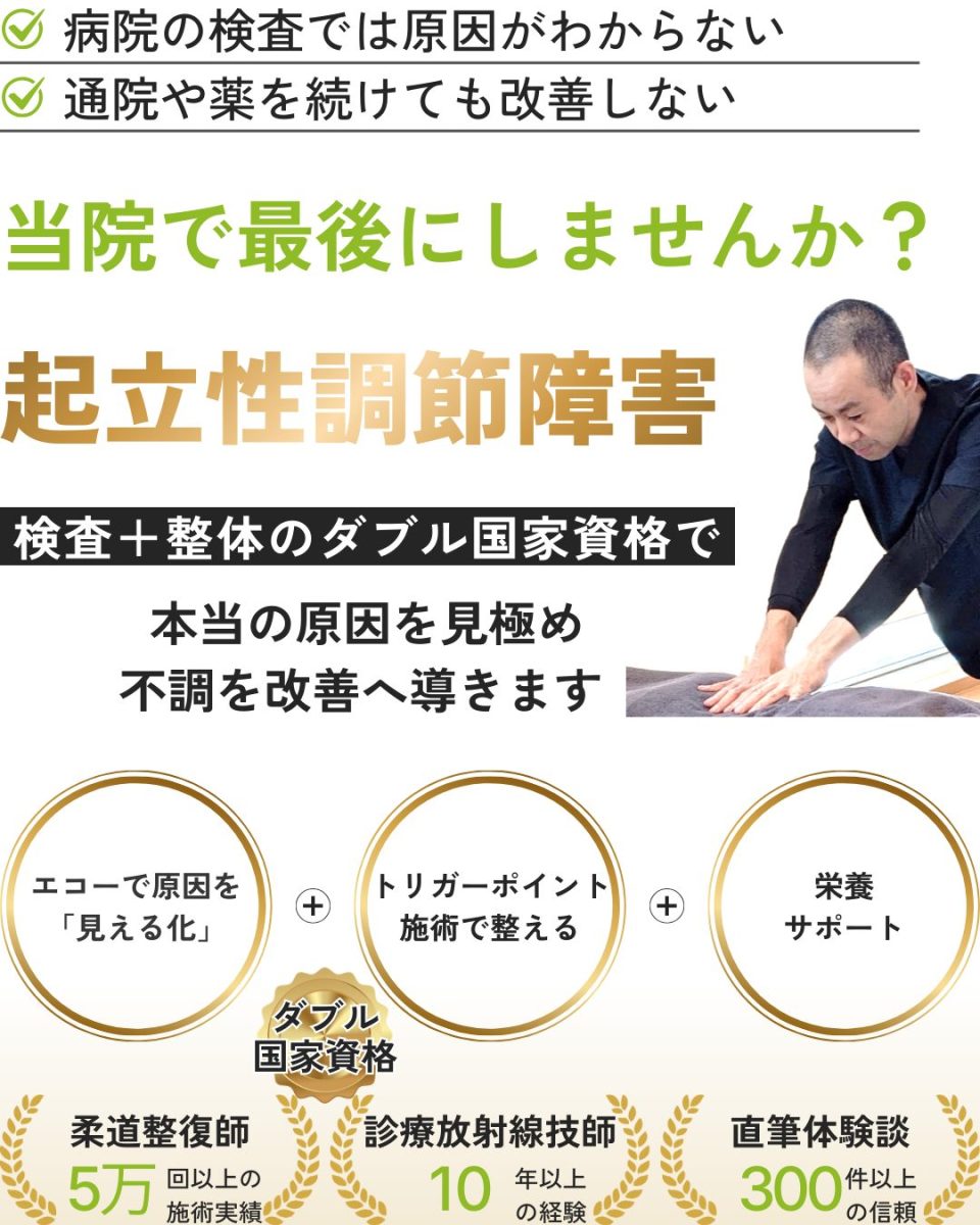 その経験を活かし、「画像ではわかりにくい不調のパターン」や「筋肉が原因の症状」を見逃さず、多角的にあなたの身体を分析します。