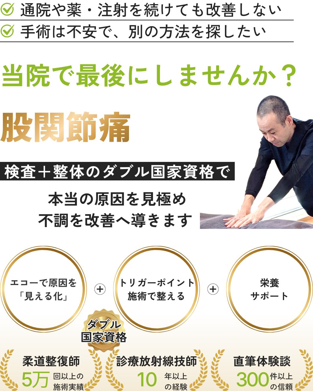 ■ 柔道整復師(国家資格)として累計50,000回以上の施術実績
