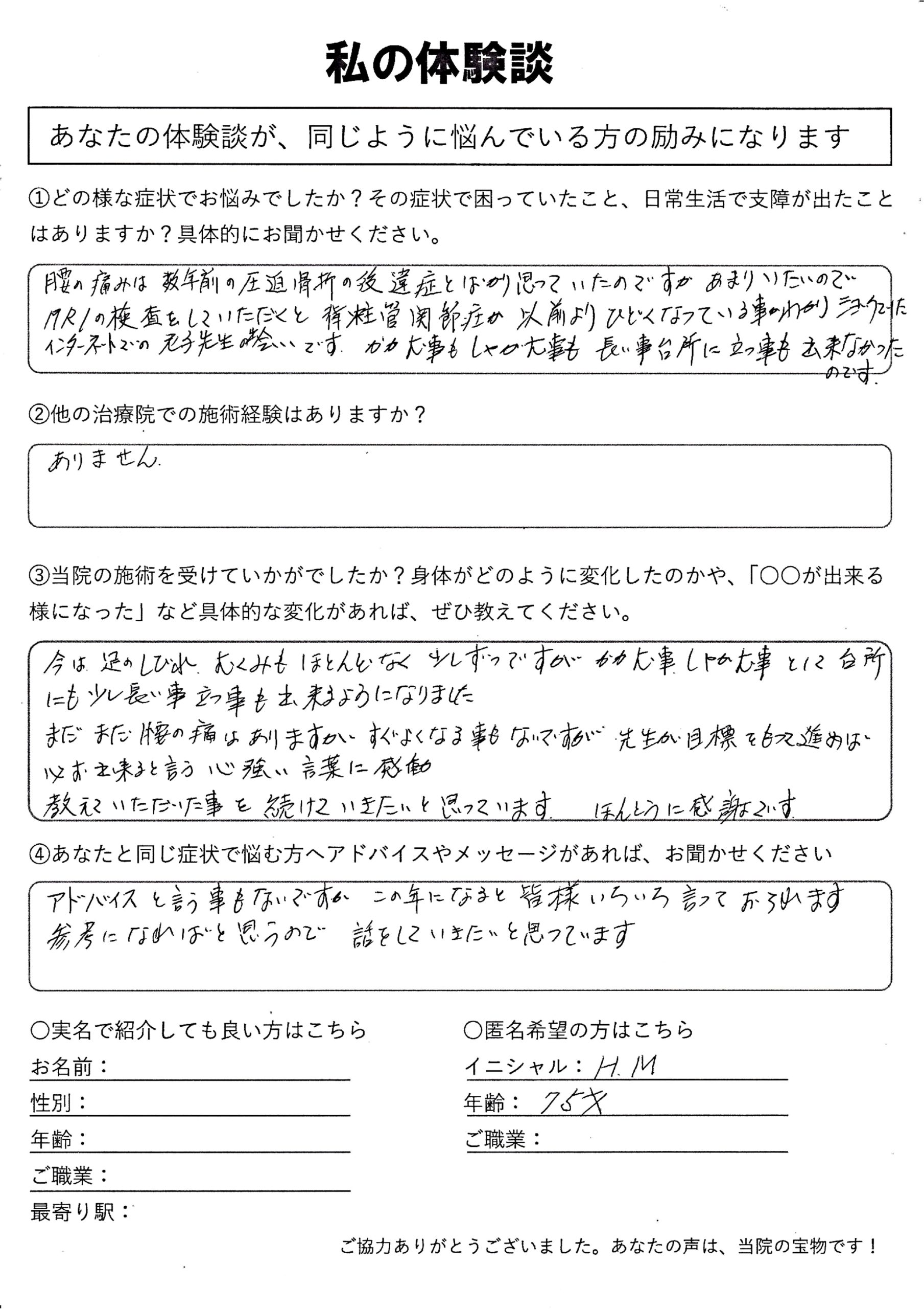 | 脊柱管狭窄症 H.M様 75代 女性 |