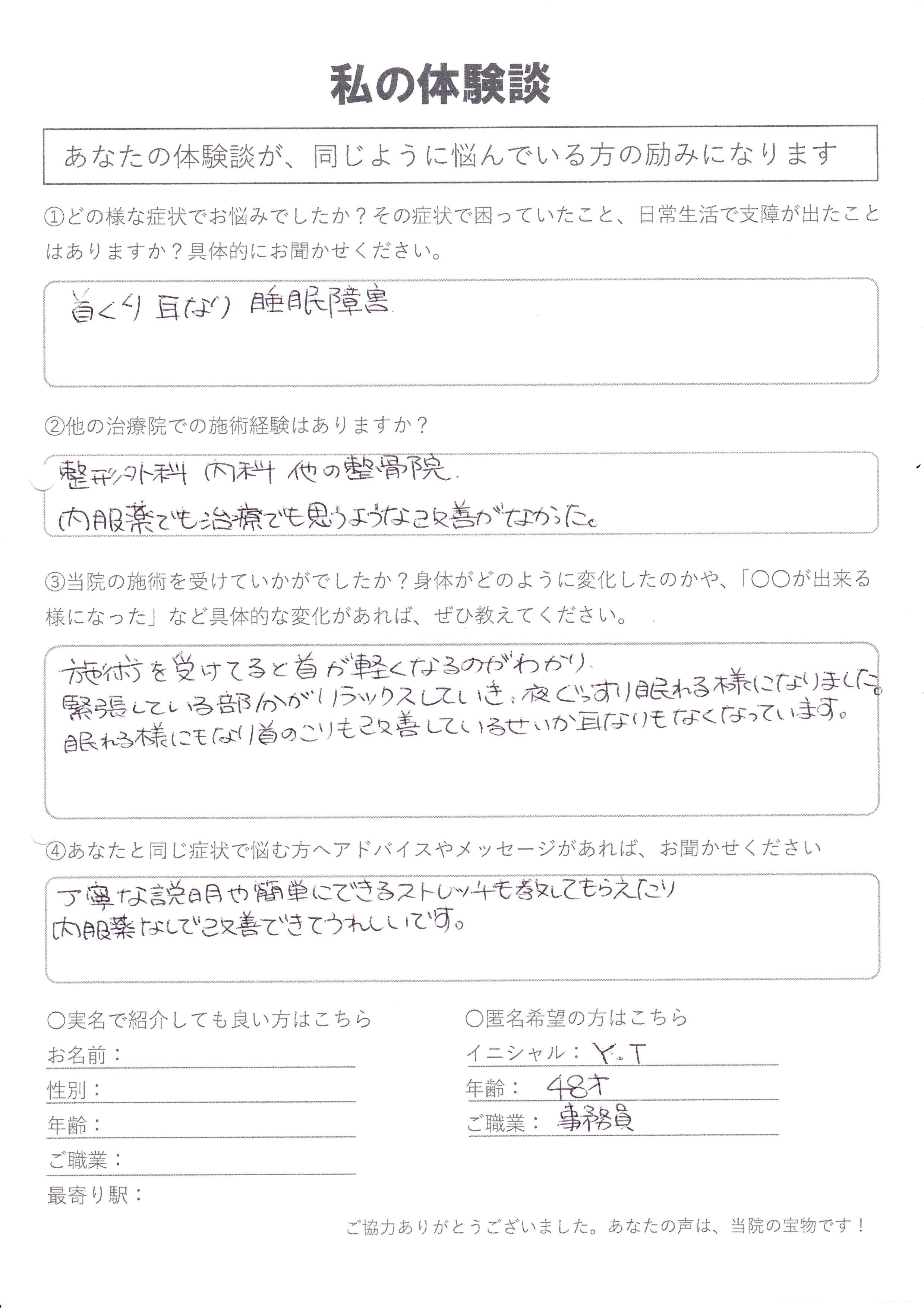 | 耳鳴り・睡眠障害・首肩こり Y.T様 48歳 女性 |