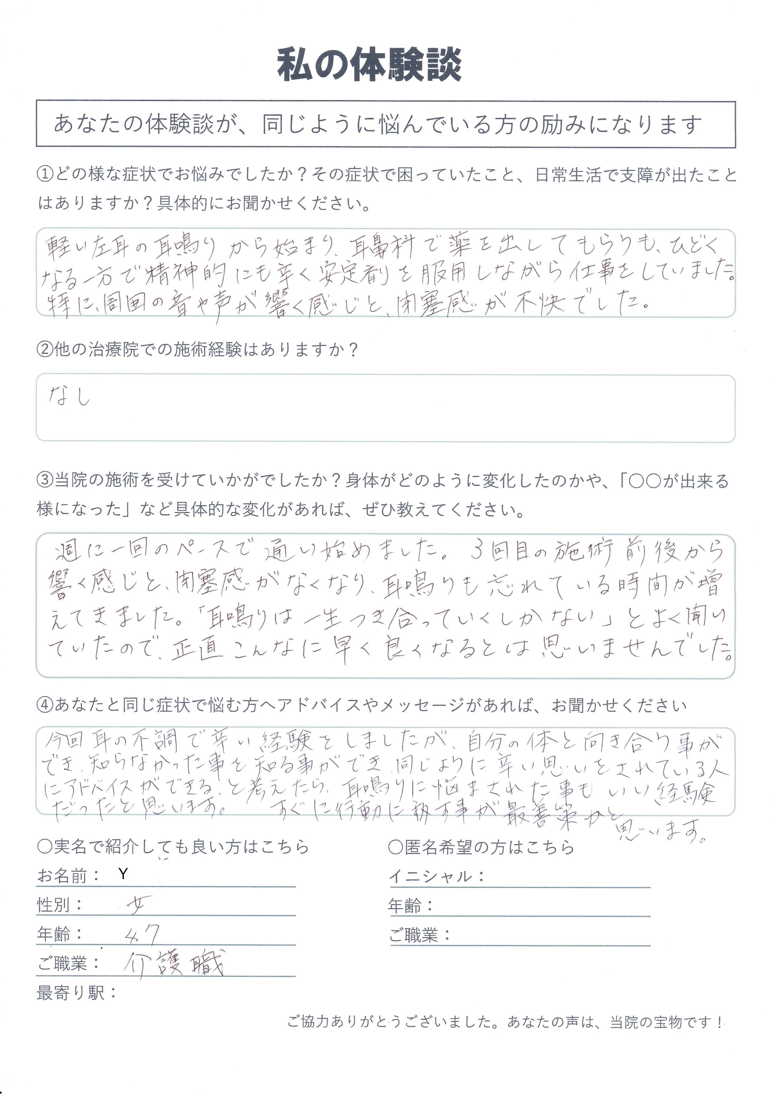 | 突発性難聴・耳鳴り・耳閉感 Y様 47歳 |