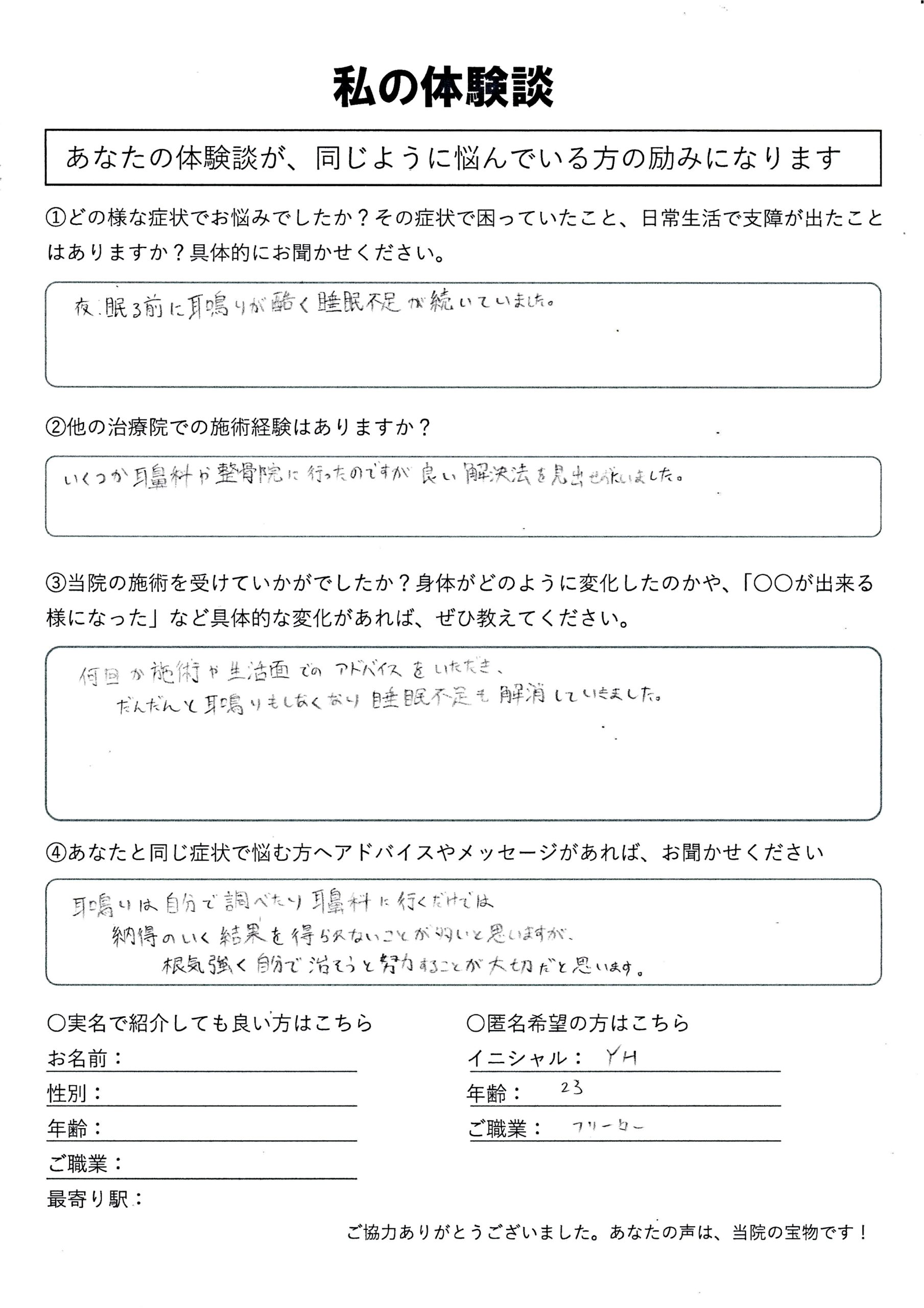 | 耳鳴り・睡眠不足 Y.H様 20代 男性 |