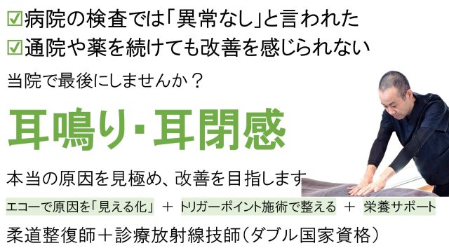 耳鳴りは、自分で調べたり耳鼻科に行くだけでは納得のいく結果を得られないことが多いと思いますが、根気強く自分で治そうと努力すること大切だと思います。 |