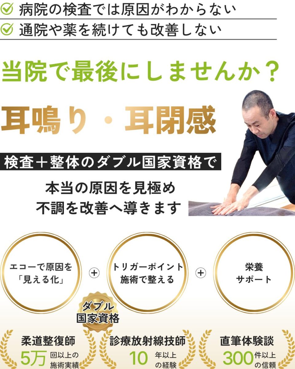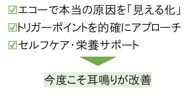 あなたの耳鳴りは、今のままでは原因となるトリガーポイントに適切にアプローチできていないため、症状が一向に改善しない可能性があります。