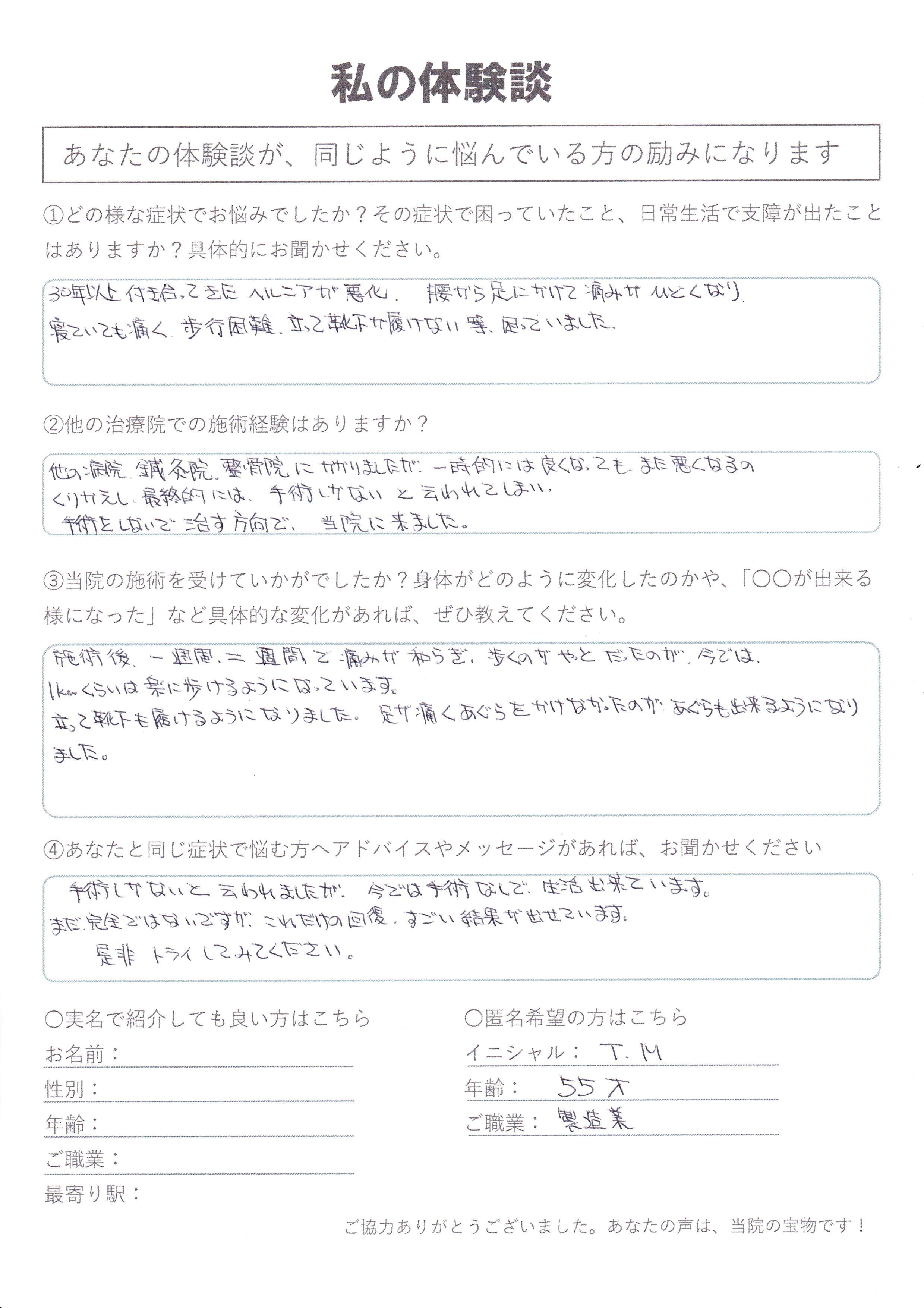 | 手術を宣告された椎間板ヘルニア T.M様 55歳 製造業 |