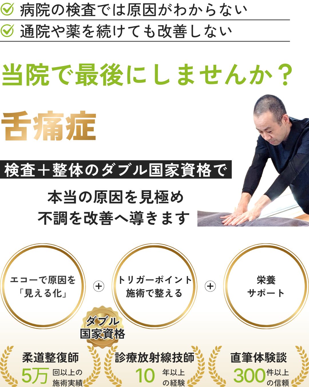 ■ 柔道整復師(国家資格)として累計5万回以上の施術実績